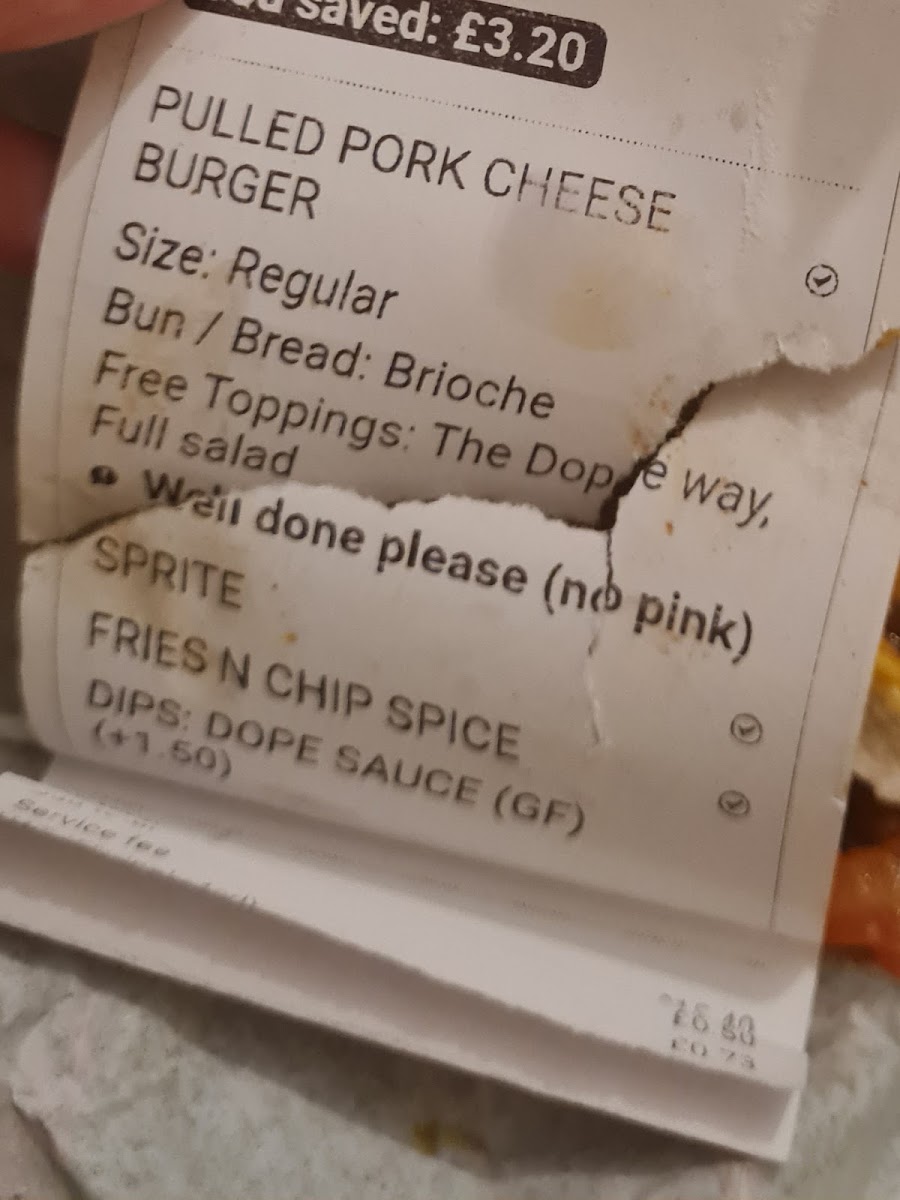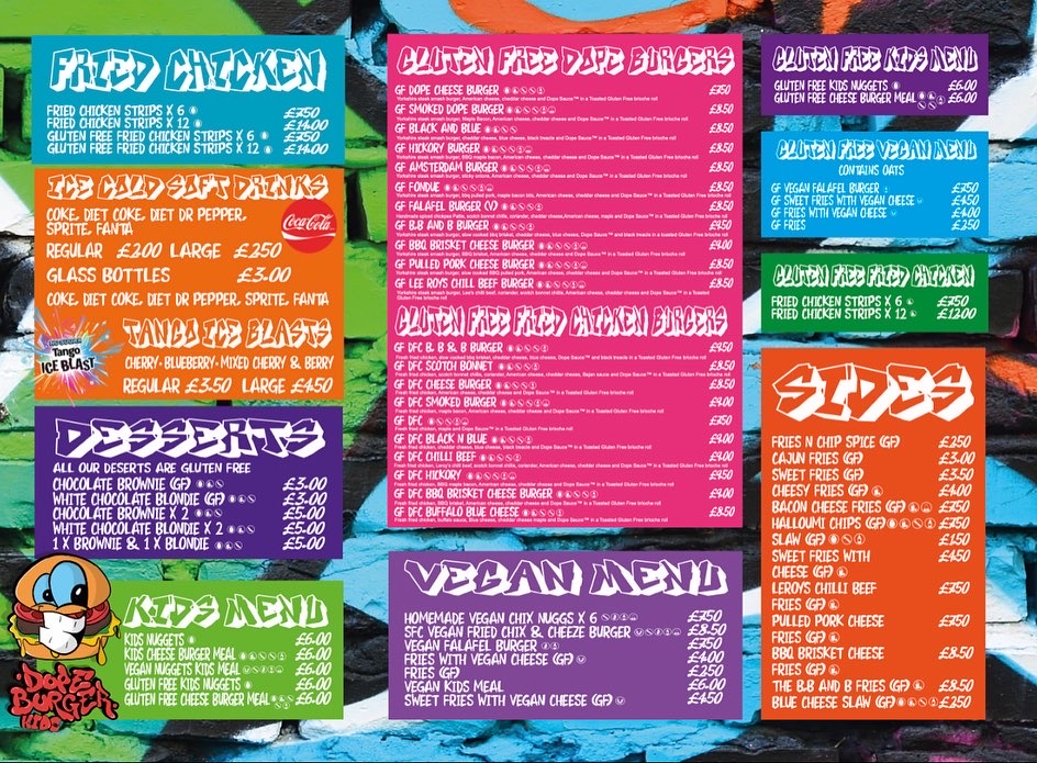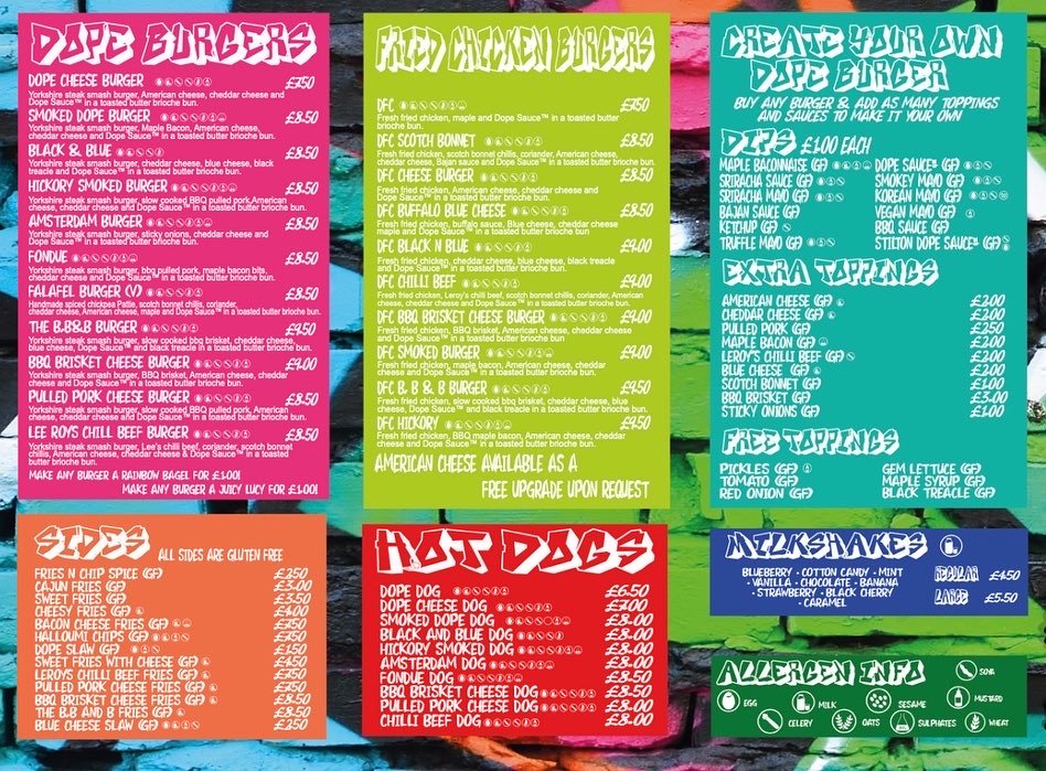 Dope Burger Menu